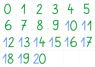 Mit den arbeitsblättern lernen die kinder zuerst die zahlen von 11 bis 20 .